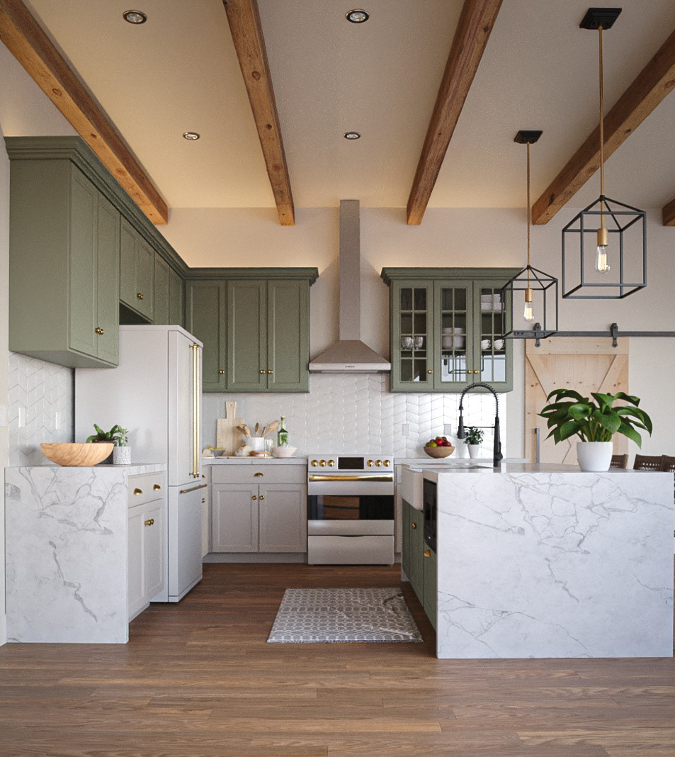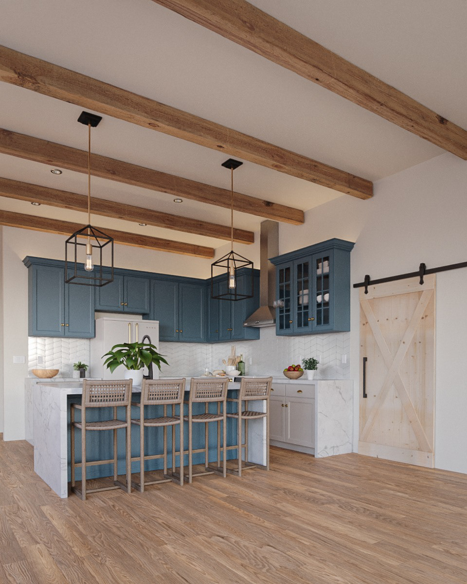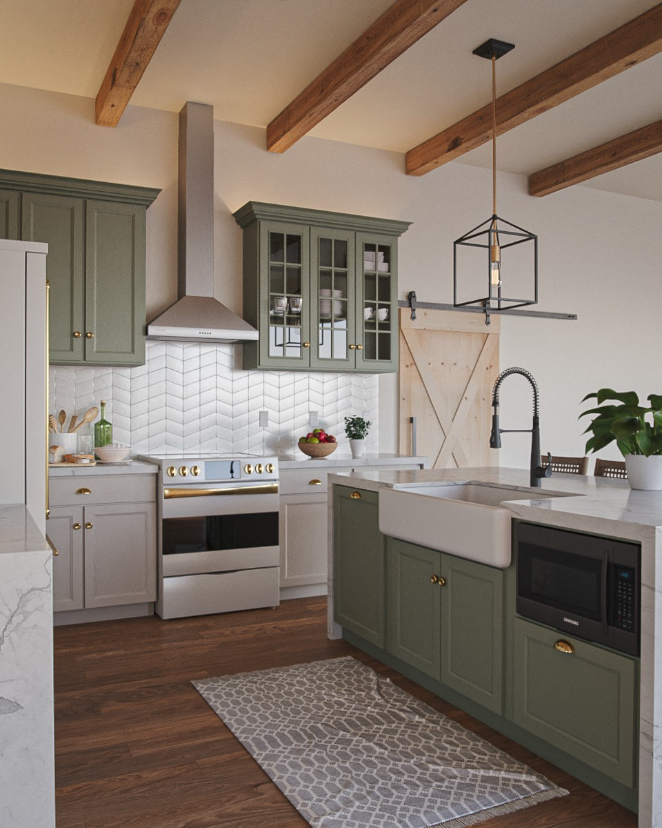 Optamos por restaurar os armários existentes, mantendo o charme original da cozinha enquanto trazemos uma nova vida para o espaço. A escolha das cores revitalizou os armários, dando um toque moderno ao estilo farm house.